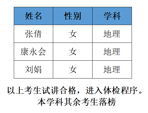 桃城中學高中部本部7月份招聘 地理 擬錄取人員
